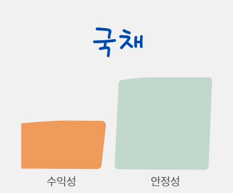 국채는 간단하게 설명하면 나라에서 발행하는 채권이라고 할 수 있습니다. 즉, 국가가 국민에게 돈을 빌리고 돈을 빌려준 국민은 이자를 받는 것이죠. 국가에서 발행하는 채권이니만큼 다른 투자상품에 비해 안정성이 매우 높습니다. 하지만 안정성이 높은 만큼 상대적으로 이자율이 낮은 편입니다. 그 때문에 국채는 개인투자자들에게 매력적인 투자 수단이라고 할 수 없었습니다.