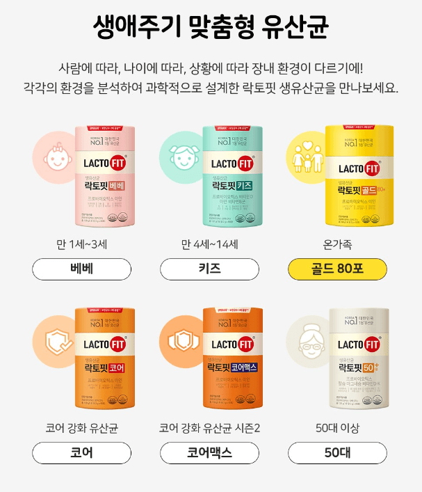 사람에 따라, 나이에 따라, 상황에 따라 장 내 환경이 다르기 때문에 락토핏에서는 각각의 환경을 분석하여 과학적으로 설계한 락토핏 생유산균을 제공하고 있습니다.