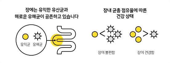 대장균과 같은 유해균은 우리가 먹는 영양분을 가지고 유독 물질을 만들어 내며, 이러한 유독 물질은 다시 장에 흡수되어 우리 건강에 지속적인 위험 요인으로 작용할 수 있습니다. 때문에 우리 장 속 유해균과 유익균의 밸런스 관리가 필요합니다.
