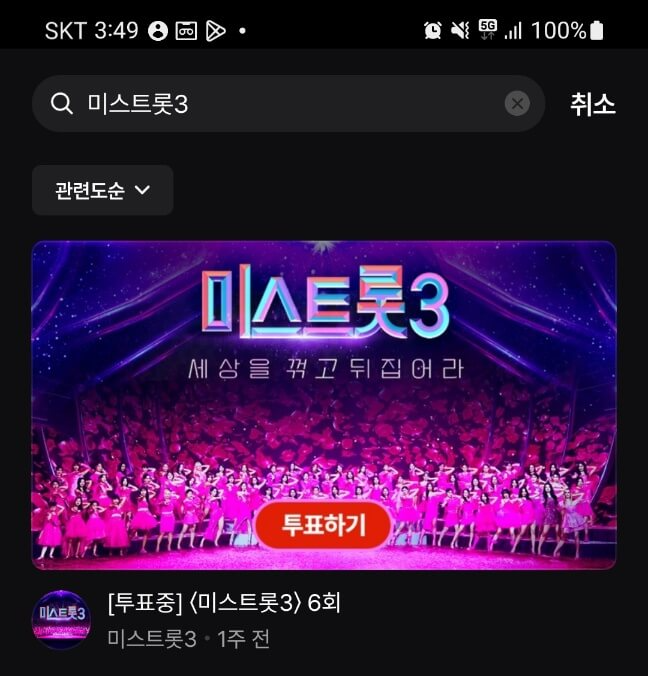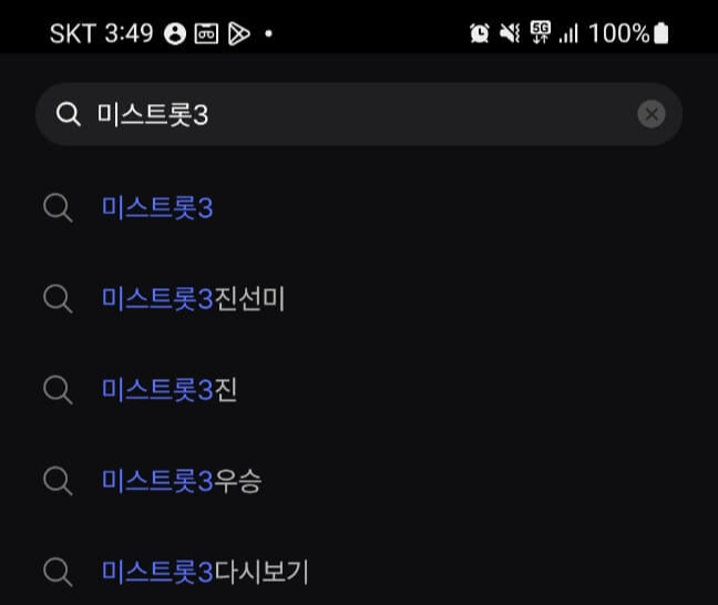 '미스트롯 3'을 입력한 후 미스트롯 3를 클릭합니다.