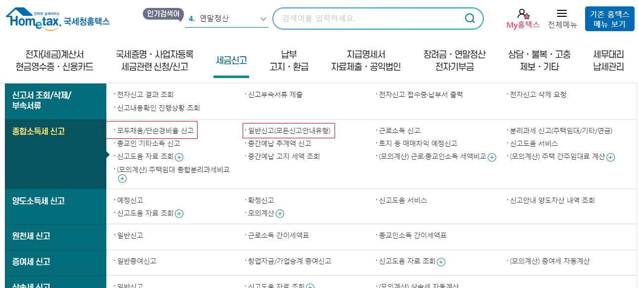 모두채움 신고 / 단순경비율 신고